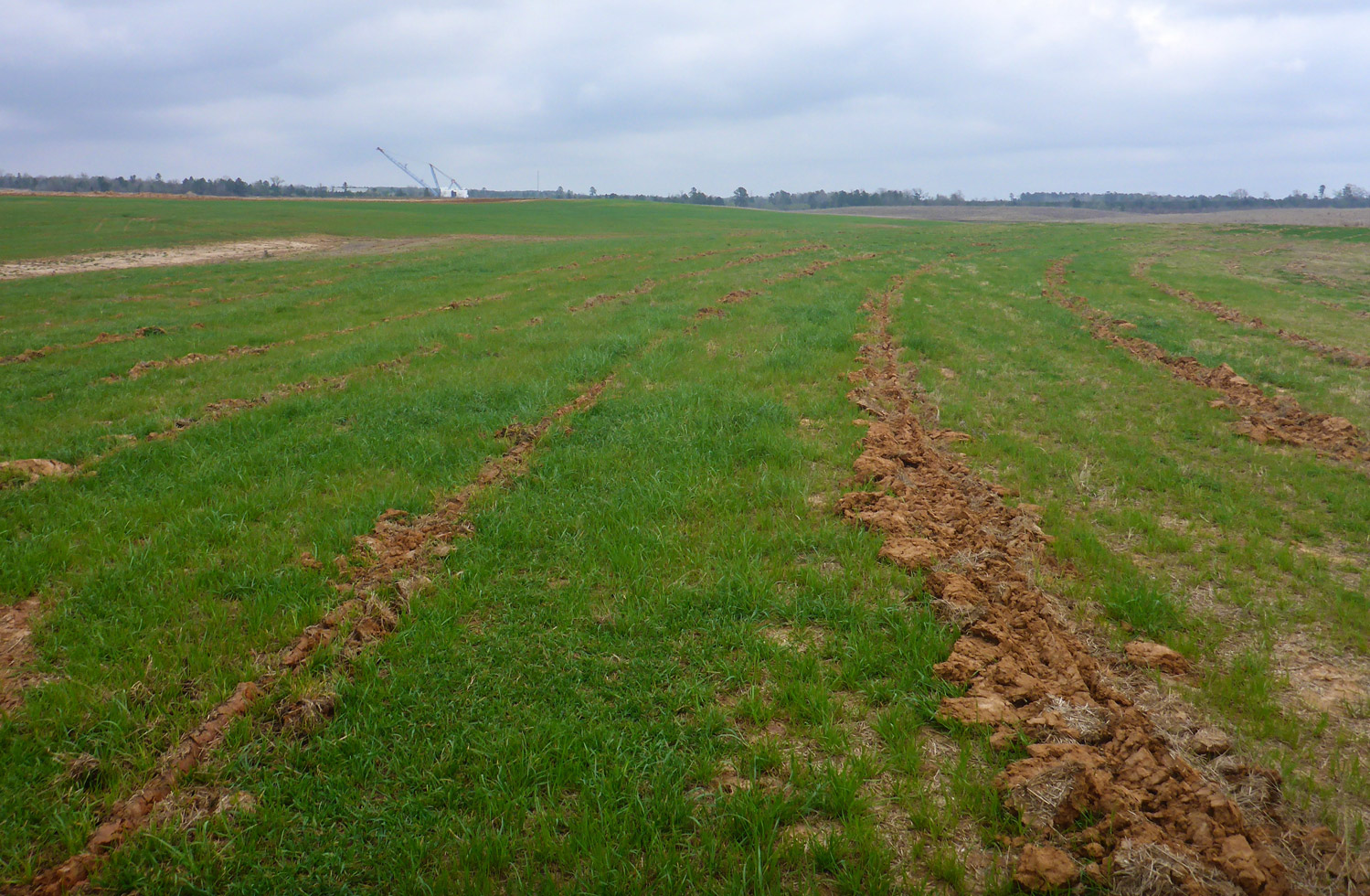A reclaimed area at the Marshall Mine with furrows of planted trees.